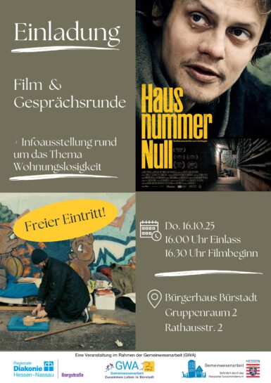 Bürstadt. Die Gemeinwesenarbeit Bürstadt lädt am Donnerstag, 16. Oktober 2025 um 16 Uhr zur Filmvorführung „Hausnummer Null“ ins Bürgerhaus Bürstadt ein. Der berührende Dokumentarfilm von Lilith Kugler bietet einen Einblick in das Leben des obdachlosen Chris. Hierfür hat die Filmemacherin Chris zweieinhalb Jahre lang (2021 – 2023) in seinem herausfordernden Alltag begleitet.