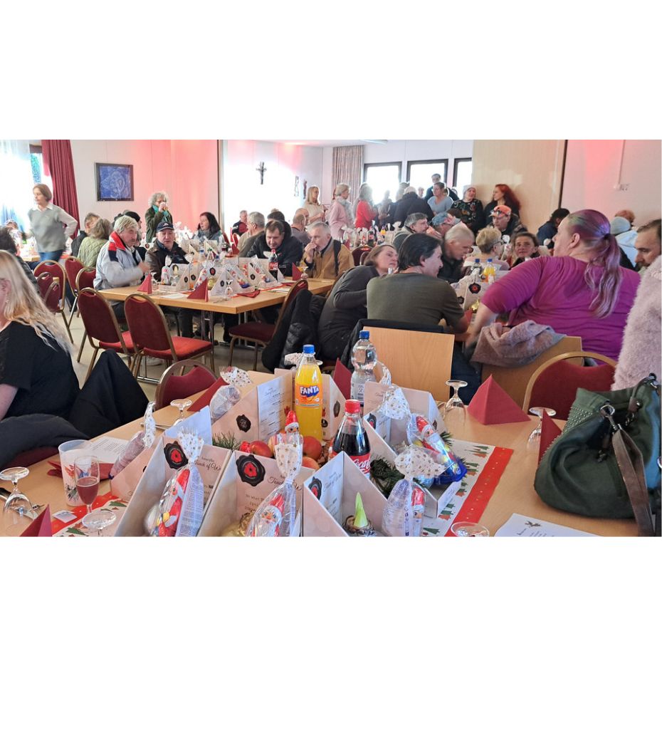 Am 18. November fand im Gemeindehaus der Laurentiuskirche eine besondere Weihnachtsfeier statt. Rund 190 Gäste, die meisten von ihnen wohnungslos, wurden in einer festlich dekorierten und einladenden Atmosphäre empfangen. An den Tischen standen ehrenamtliche „Tischdamen und Tischherren“ bereit, um die Wünsche der Gäste entgegenzunehmen. Sie wurden unterstützt von Mitarbeitenden der Wohnungsnotfallhilfe der Regionalen Diakonie Bergstraße und des Fördervereins.